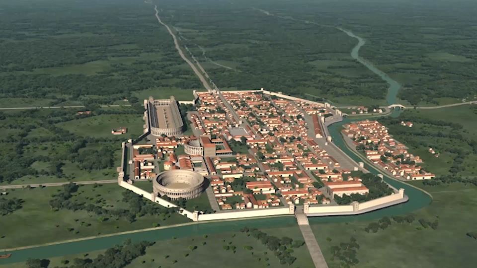 A település még i.e. 181-ben alapították a rómaiak, ami a 2. század környékére az egyik legnagyobb kiterjedésű város lett a birodalomban, amelynek a lakossága meghaladta a 100 ezer főt. A 3-4. században a város már jelentős tengerészeti kikötő volt, a kereszténység terjedésével pedig az egyik legfontosabb vallási központtá alakult, a város püspöke még pátriárkai rangot is kapott. A várost 401-ben I. Alarik király megostromolta és elfoglalta, ami után már nem sikerült a régi fényét visszaszerezni. Ide érkeztek meg 452 nyarán a hunok Attila vezetésével és fogták ostrom alá a várost.